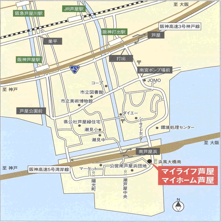ルートマップ ● 電車でお越しの方 阪神電鉄「芦屋」駅・JR「芦屋」駅・阪急電鉄「芦屋川」駅より 阪急バス「浜風大橋南」停車場下車すぐ 路線図 ⇒ 阪神電鉄「芦屋駅」の時刻表はこちら 平日 土休日 乗り場は①永保橋行 ⇒ JR 「芦屋駅」の時刻表はこちら 平日 土休日 乗り場は③番 ⇒ 阪急電鉄「芦屋川駅」の時刻表はこちら 平日 土休日 乗り場は③番 ⇒ お帰り(浜風大橋南)の時刻表はこちら 平日 土休日 乗り場はこちら ● お車でお越しの方