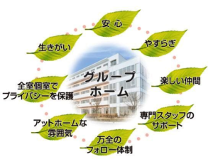 家庭的な雰囲気を保てるよう設計された全室個室のゆったりとした住空間において高齢者の方が少人数(1ユニットの定員9名)のグループとなり、専門のスタッフによる介護支援を受けながら共に暮らしくつろぐことで自立生活の維持を目指します。